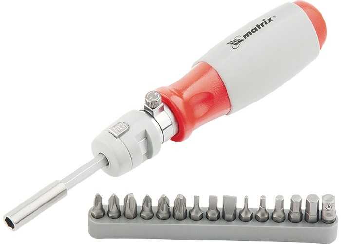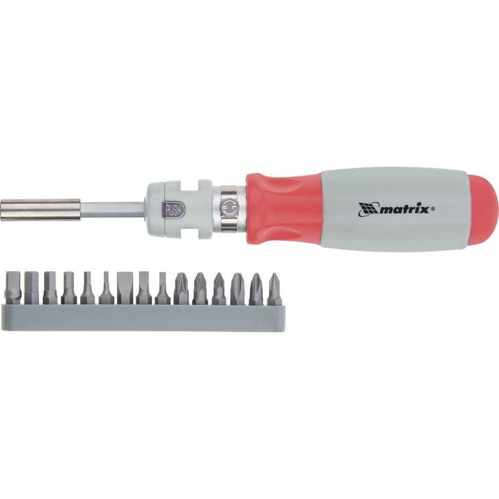 Отвертка реверсивная, телескопическая, силовой элемент под ключ, набор бит, CrV, 15 шт Matrix Отвертки с набором бит в Черкесске